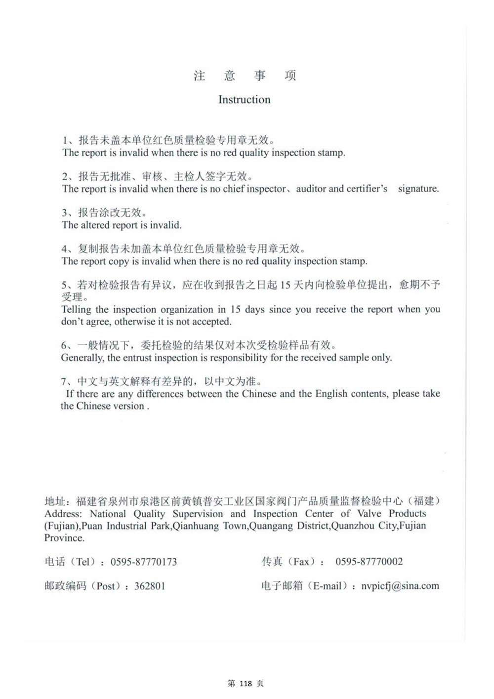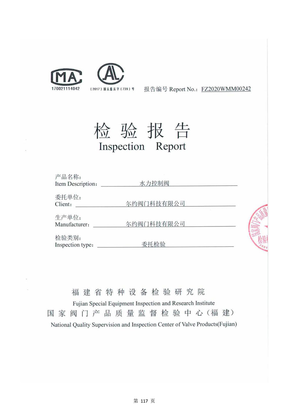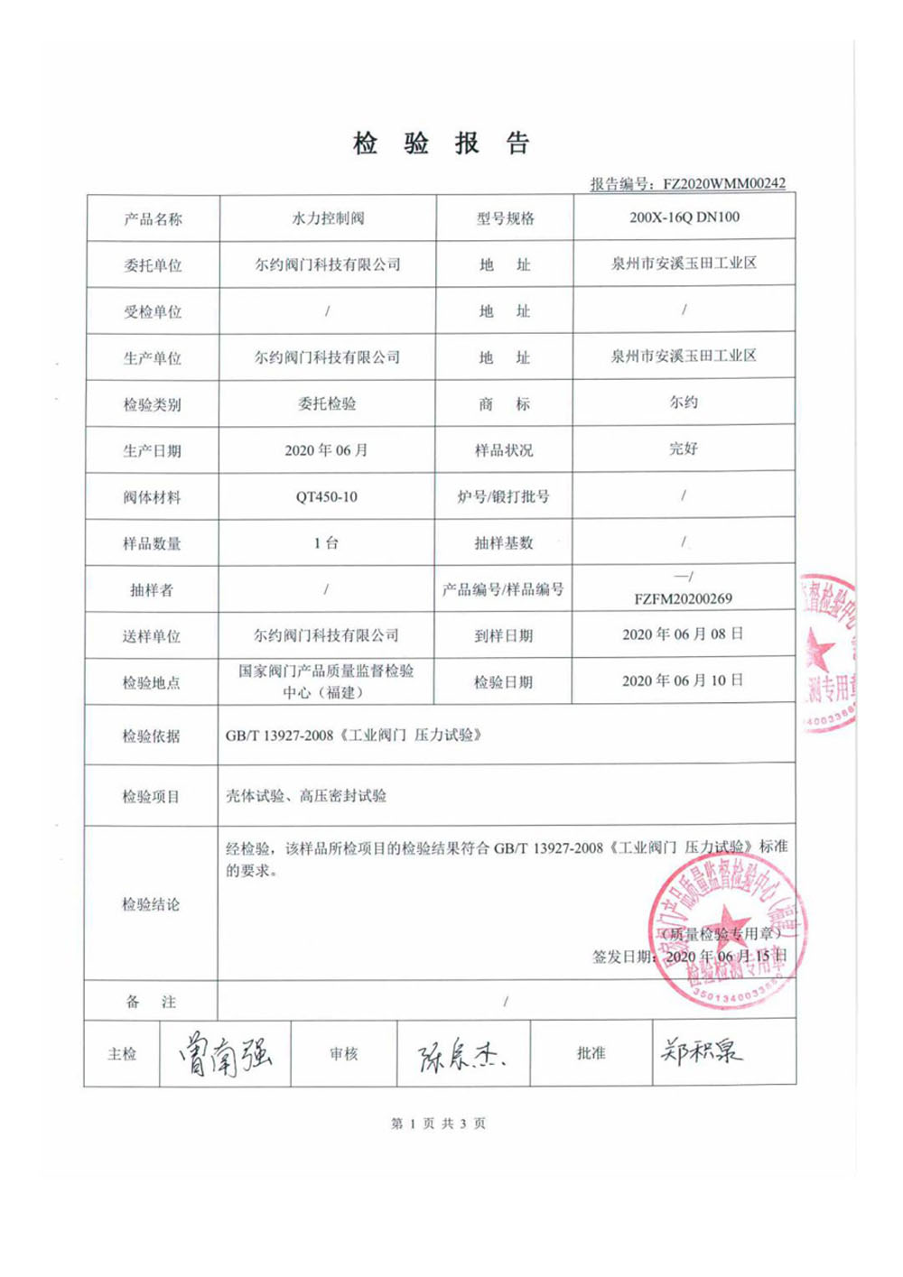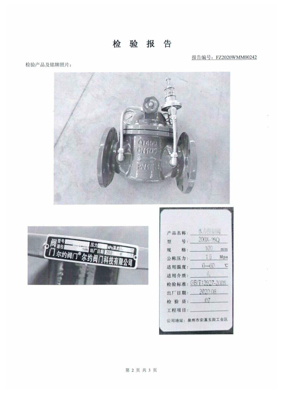 排气阀检验报告