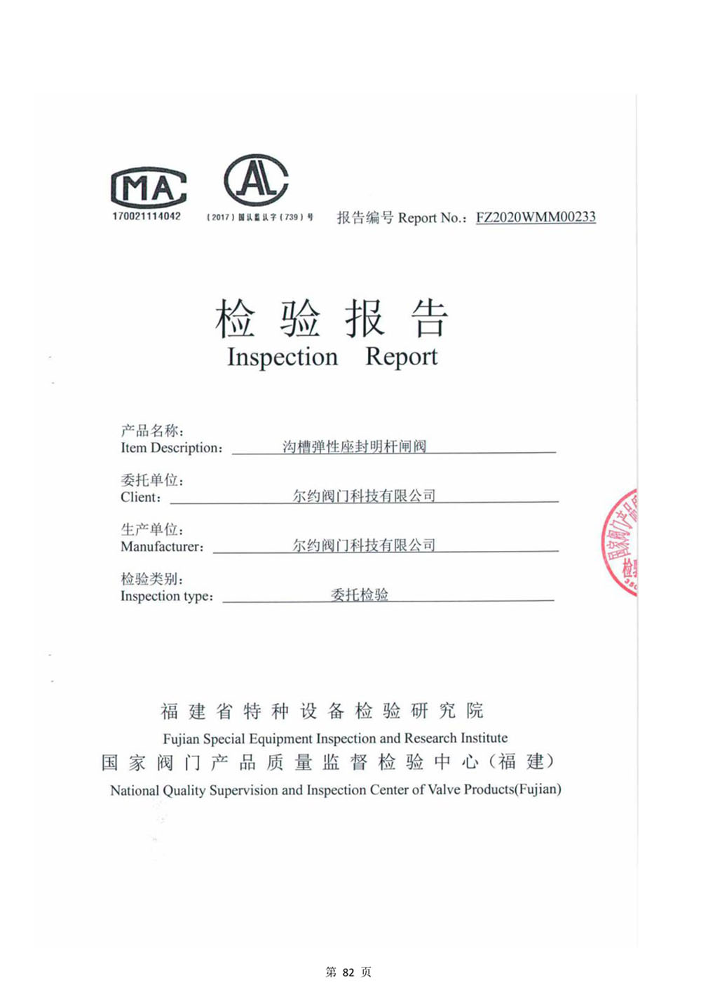 铜磁性加密阀检验报告