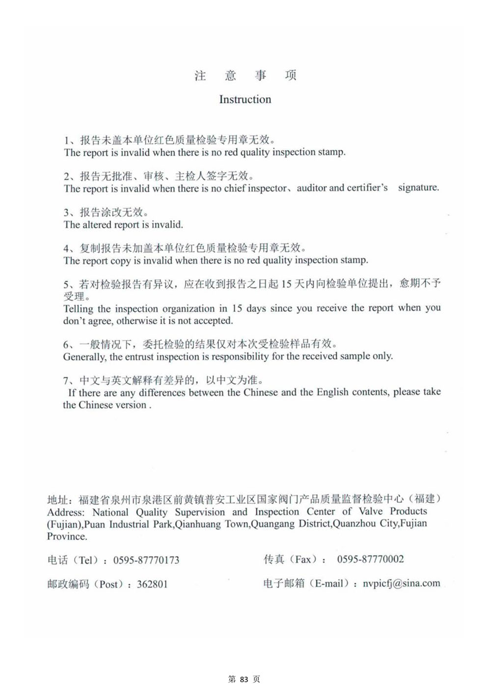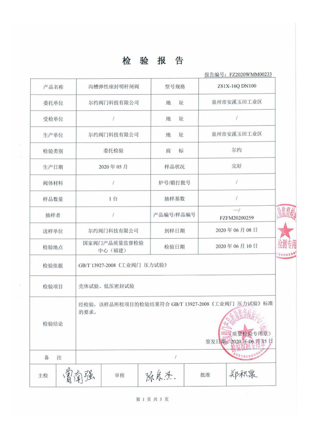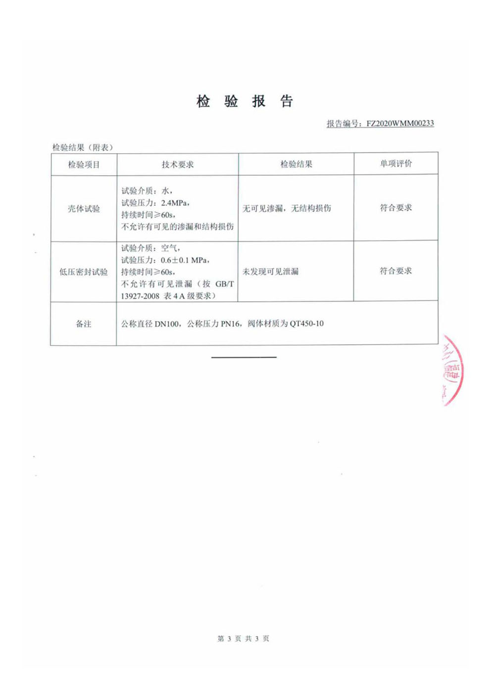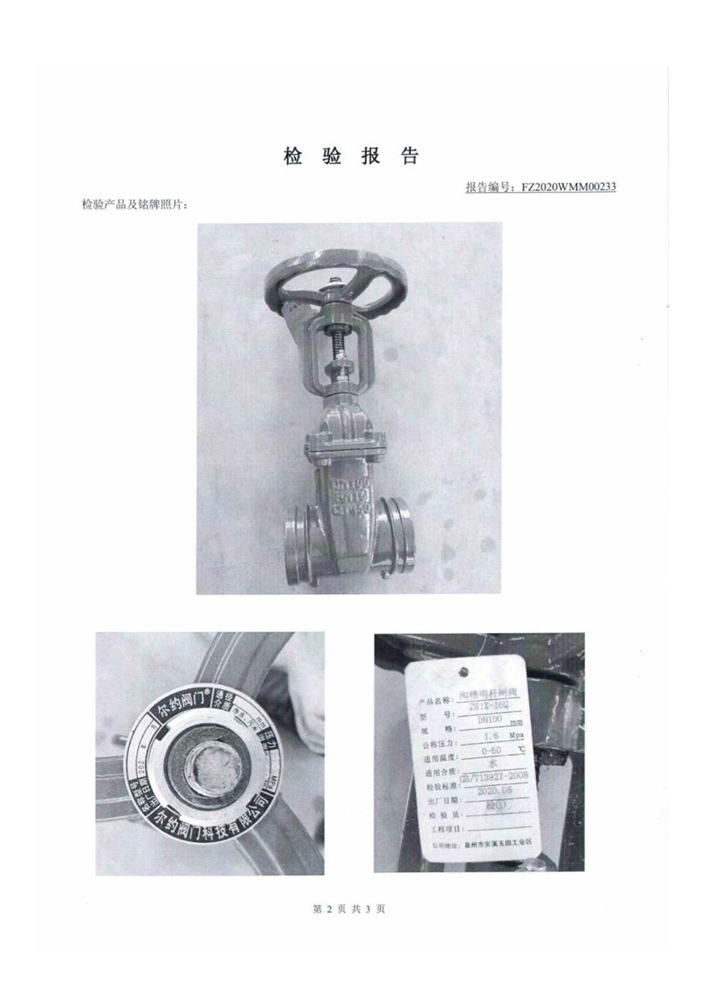 蝶阀检验报告