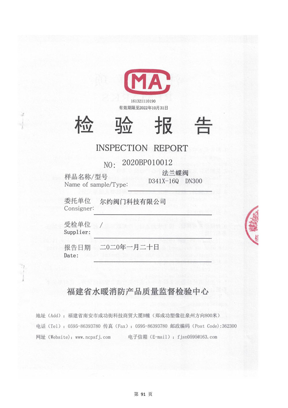 法兰蝶阀检验报告