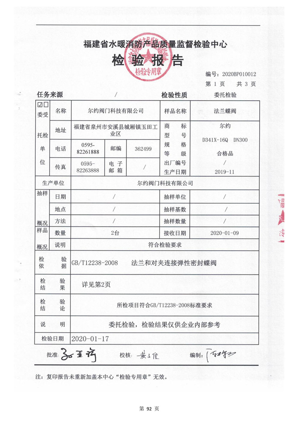 蝶阀检验报告