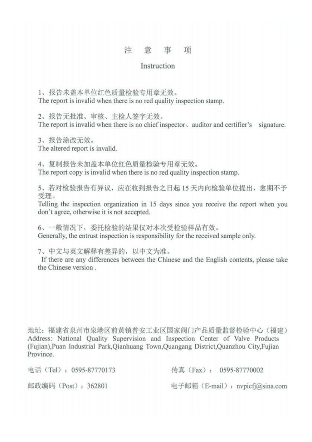 铜球阀检验报告